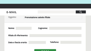 Indica nel corpo della mail le tue informazioni personali: nome, cognome o denominazione sociale, filiale di riferimento, data e fascia oraria desiderata, riferimenti telefonici