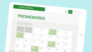 Entra nel sito della banca online e scegli PROMEMORIA in HOME per accedere al servizio, che ti ricorda puntualmente tutte le tue scadenze: semplici memorandum, pagamenti da fare, appuntamenti con il tuo Gestore o titoli in scadenza.